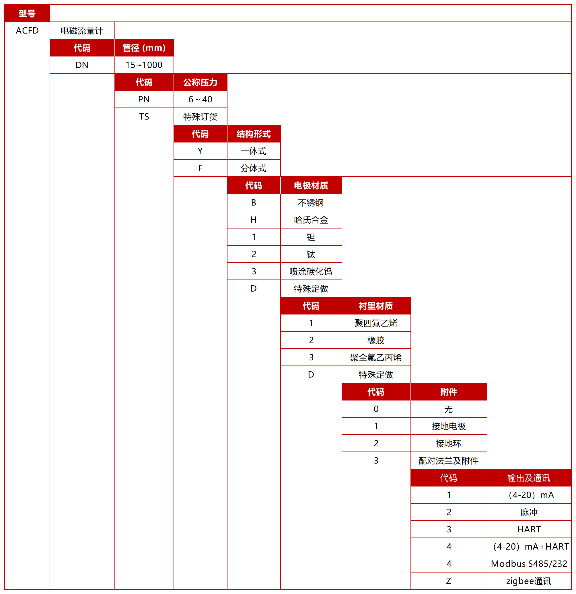 电极形式 固定式(DN10-DN3000);刮刀式(DN100-DN2000)